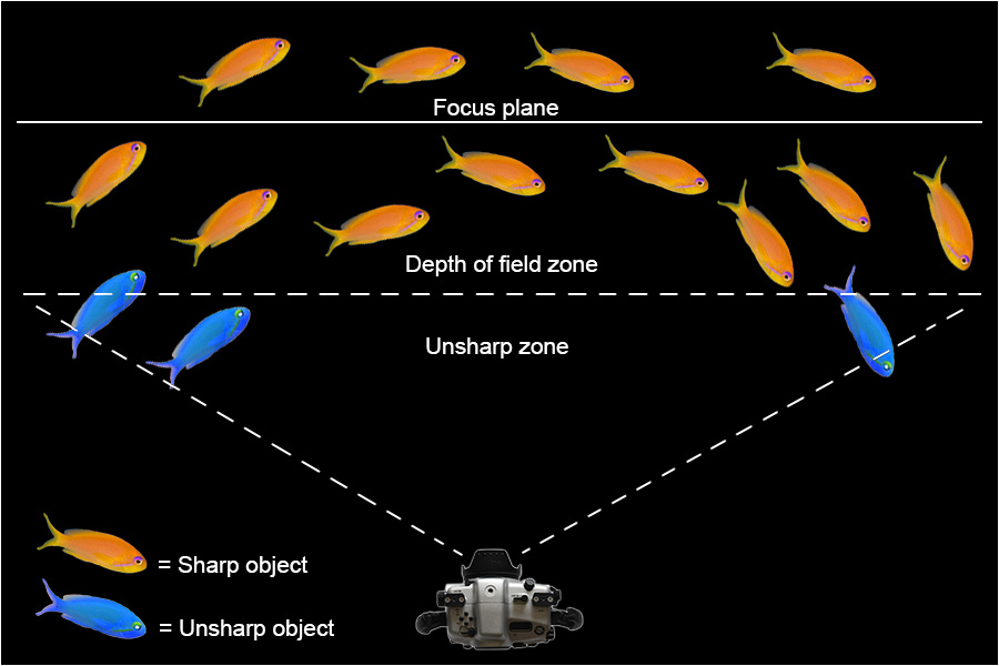 when we shoot underwater with fisheye lenses, the objects are all around us and in particular those in extreme image corners are mostly before the focus plane (i.e. too close). Since this lens provides relatively small depth of field, objects