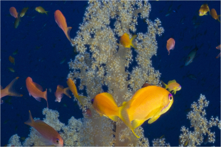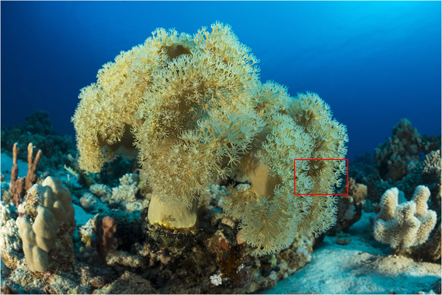 When I reviewed my Red Sea photos on a large (30") computer monitor, I was initially a little disappointed since the sharpness in the extreme image corners was not as good as in my swimming pool shots. Fortunately, I quickly discovered the reason for this – see explanation below.