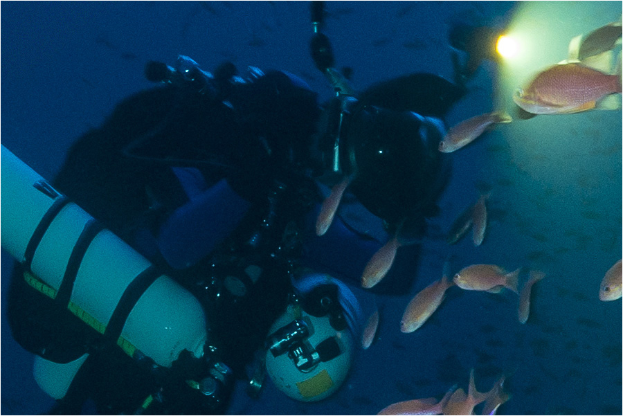 Since May 2013, I have been using the adapted lens with my D800 and I’ve thoroughly tested it under different conditions. I have used it in the Red Sea, the Bahamas, Indonesia and Croatia. In Croatia I carried out a great number of trimix dives and the deepest picture was taken at the depth of exactly 100 meters! On all my dives I have used a regular SEACAM D800 housing with the S10 viewfinder and the SEACAM 150 Offshore TTL flash (tested up to 160 m).
