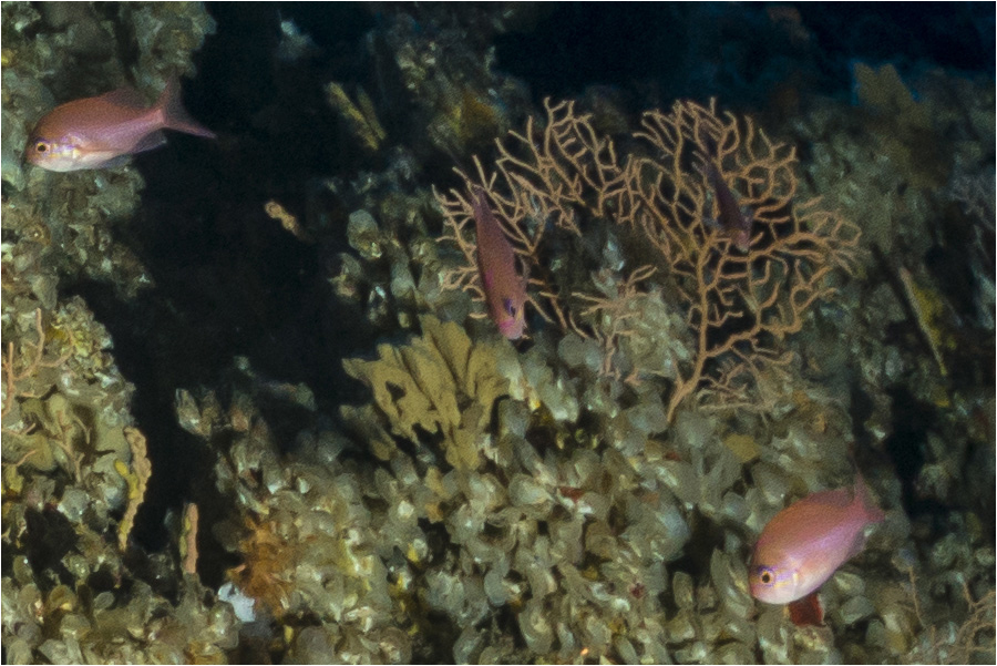 The picture below was taken in the Adriatic Sea at a depth of 95 m (ISO 800, f/18 (effective f/11, 1/13 s).